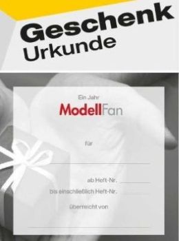 Mit dem ModellFan - Magazin verschenken Sie pure Leidenschaft für Modellbau. Sie können sich sofort eine Geschenkurkunde ausdrucken und dem Beschenkten überreichen, den Rest übernehmen wir. Dazu erhalten Sie eine hochwertige Dankeschön-Prämie zum Behalten oder Verschenken. Kein Risiko - das Geschenkabonnement endet automatisch.